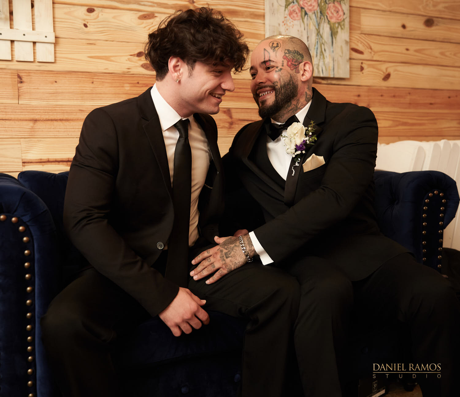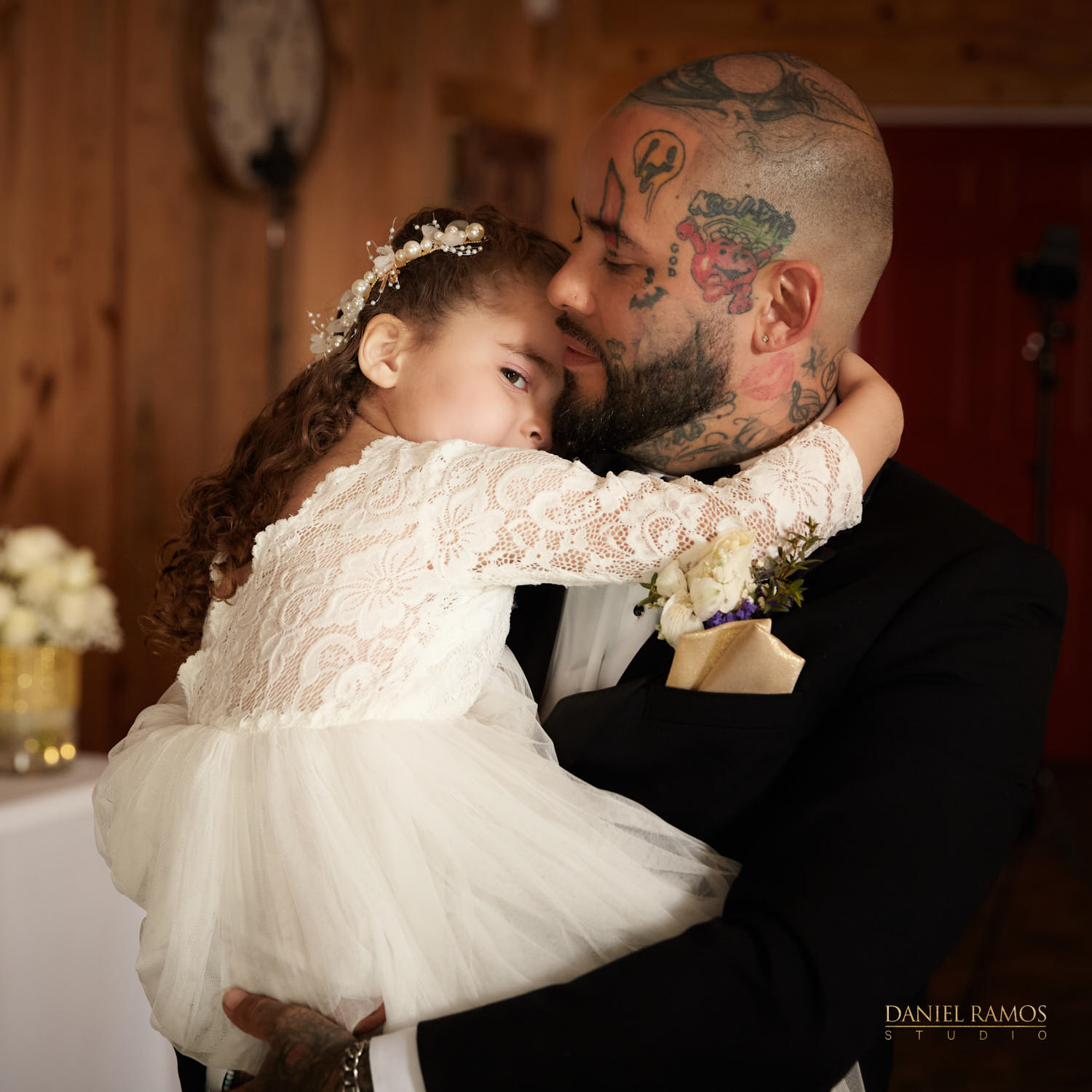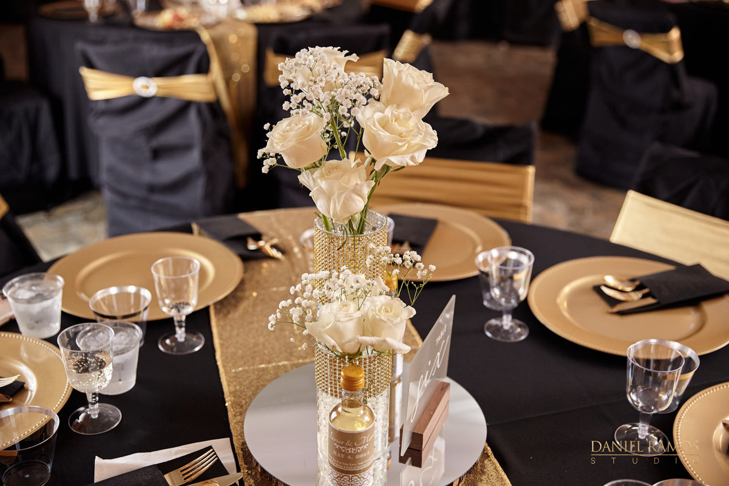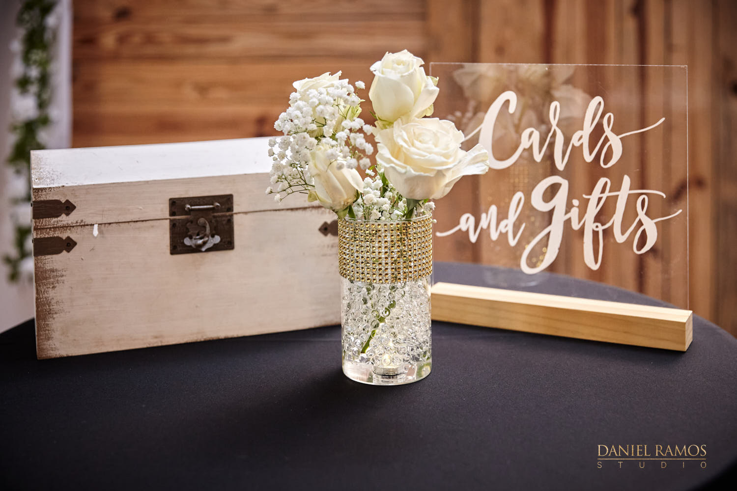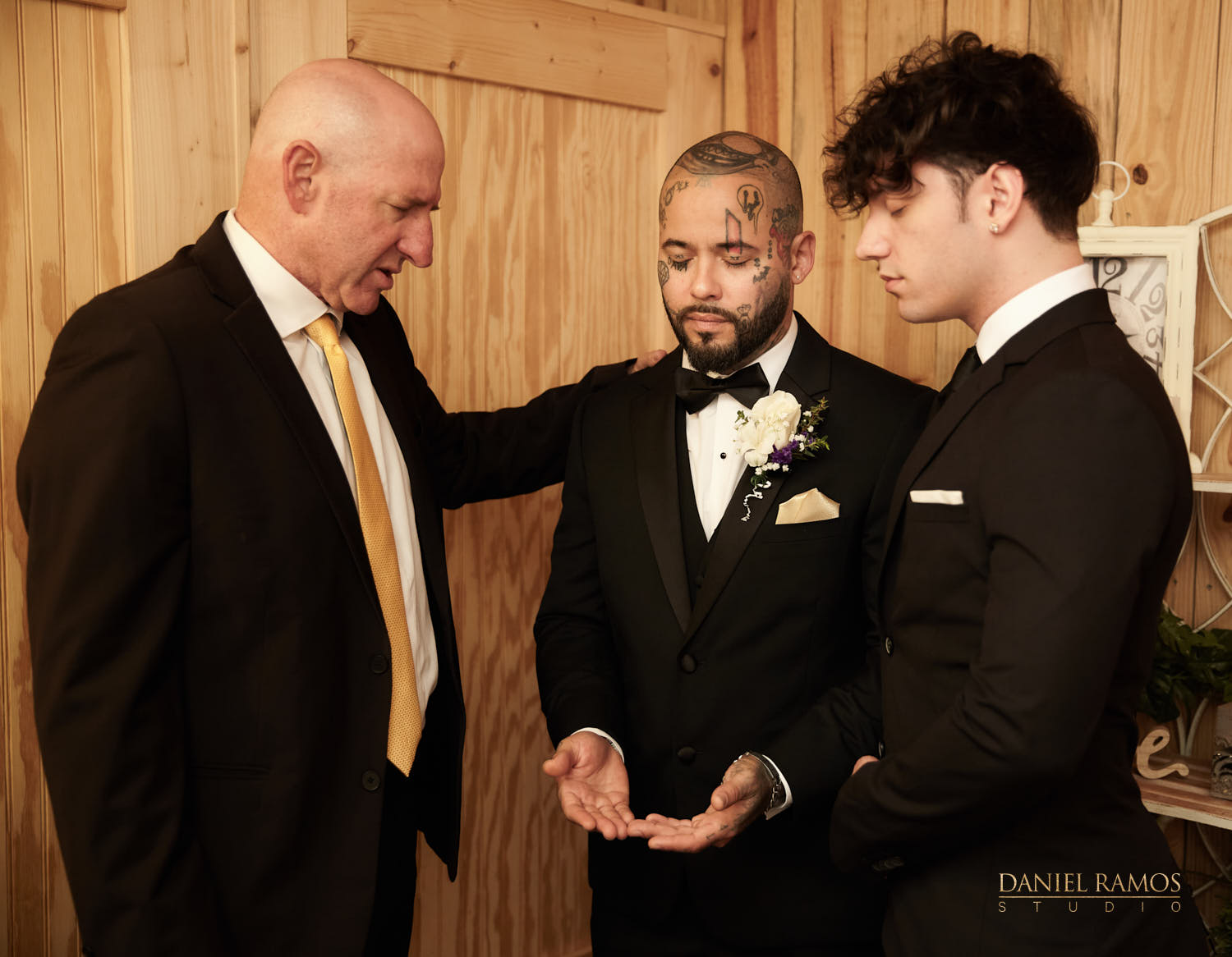 The ceremony was to take place outdoors on rustic benches and in front of a farm but the rain had other plans for us. So we moved inside the barn patio which ended up working just fine. I quickly set up all my nine cameras to capture all the moments that were about to take place.