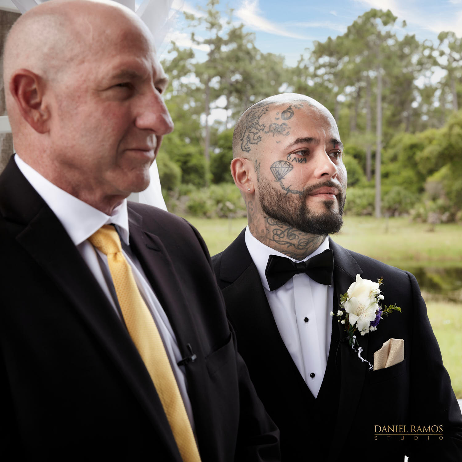 The groom was filled with emotions and anticipation as the bride was walked by one of her sons. Their pastor officiated the ceremony with bible verses and stories. Then the couple were wed to the sound of thunderous applause as people blew bubbles when they walked down as new husband and wife.